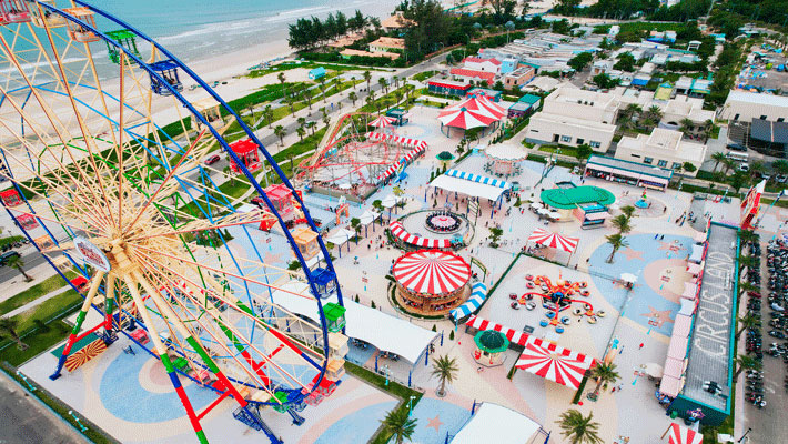 – Circus Land Park, adventurous tourists can test their courage with unique thrilling games such as: Happy Wheel will take visitors up high to see the whole view of Phan Thiet Bay or the Transmigration Train, Conquer the sea monster, Fly up, Powerful propeller, Illusion flying saucer, Floating dream. (Game cost is self-sufficient)
